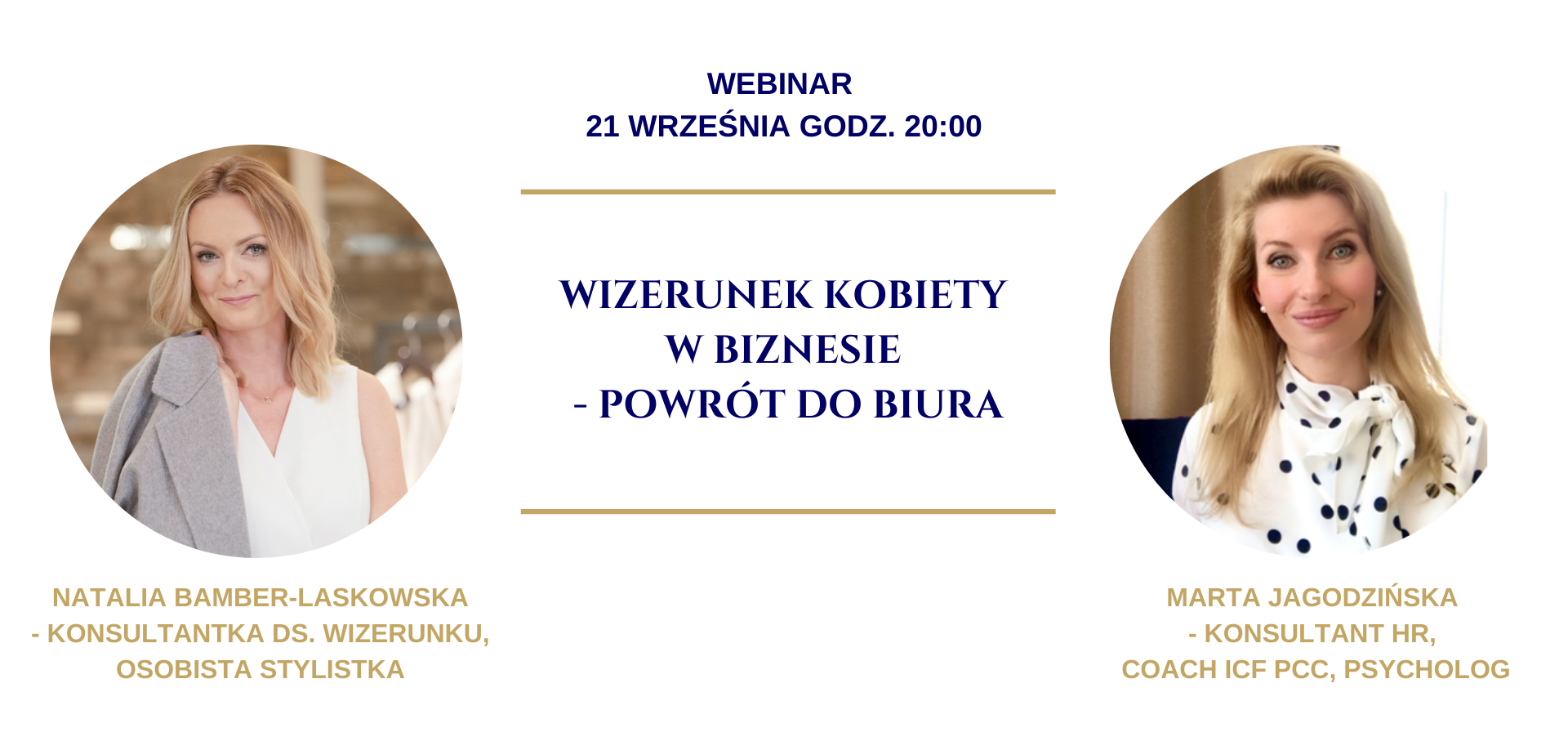 O tym będę miała przyjemność porozmawiać podczas webinaru 21.09 o 20:00 z zaproszonym gościem: Natalią Bamber-Laskowską – konsultantką ds. wizerunku, a już niedługo trenerką stylu, certyfikowaną osobistą stylistką, personal shopperem i kolorystką. Natalia od ponad 5 lat wspiera kobiety w wizerunku biznesowym pomagając im awansować, lepiej komunikować się na zajmowanych stanowiskach, a także podejmując kolejne wyzwania w nowych miejscach pracy. Pracuje głównie z kobietami, choć i męski dress code nie jest jej obcy.